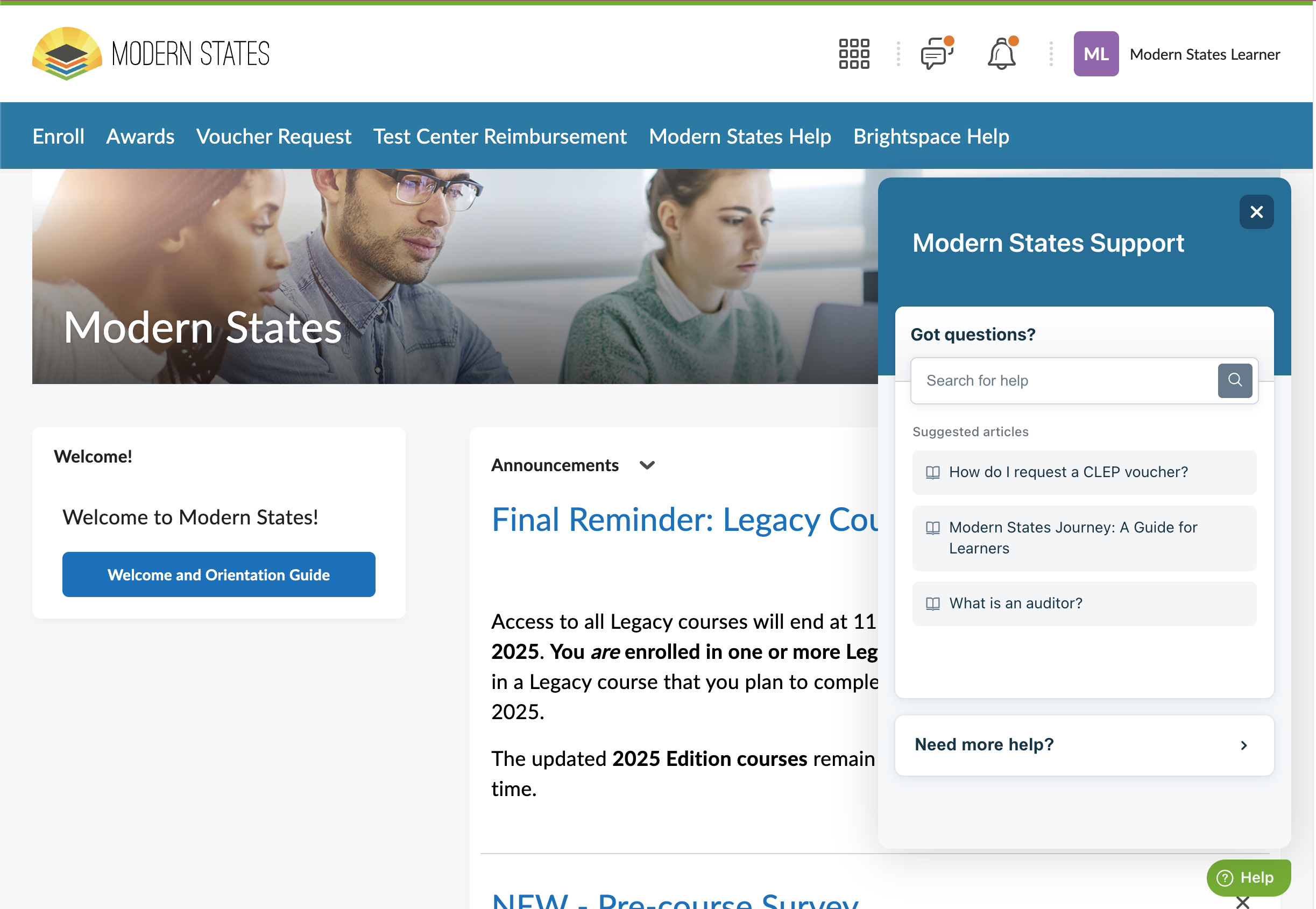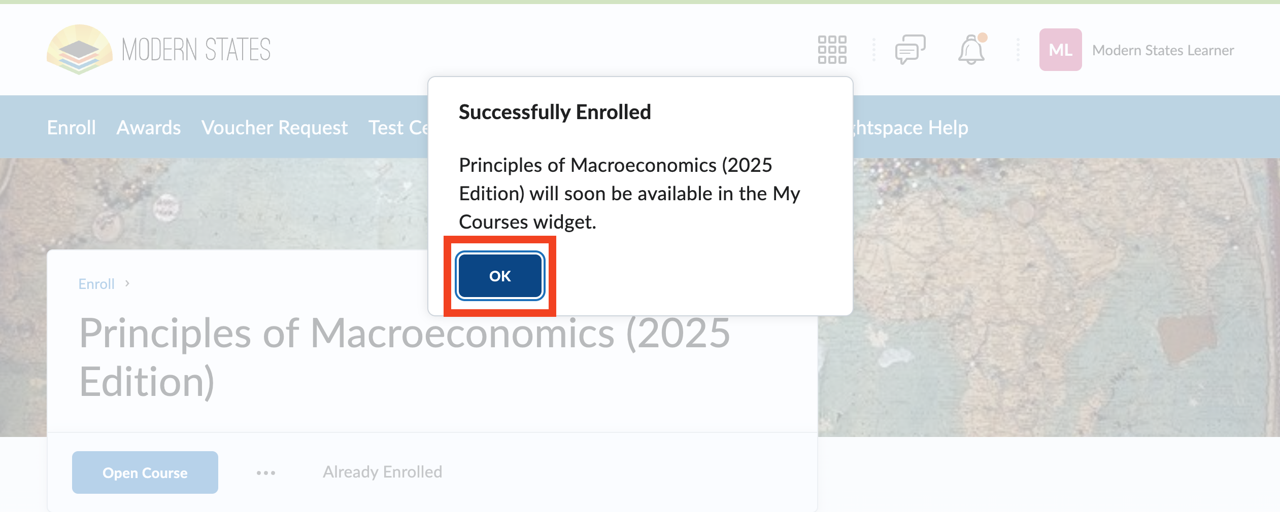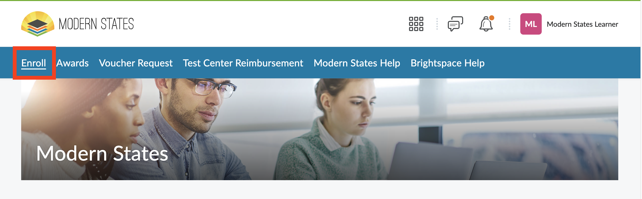 Enroll in your first Modern States course and begin earning college credit for free — step by step